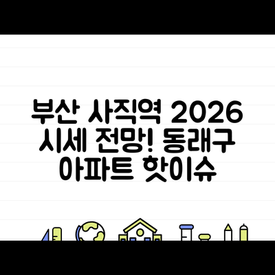 부산시 동래구 사직동에 위치한 사직역삼정그린코아더베스트2차 아파트는 2026년 1월 시세에 대해 주목할 만한 변화를 예고하고 있습니다. 올해와 비교하여 급격한 가격 상승이 예상되는 가운데, 이 아파트 단지는 특히 교통 편의성과 학군, 그리고 주변 개발 상황 등으로 인해 많은 관심을 받고 있습니다.